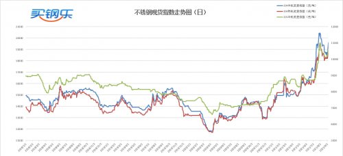今日304不锈钢原料多数价格下跌,尽管金川镍上调价格,镍期货也是以跌价收盘。现货受期货影响虽也大幅上涨,但在19400-19500元/吨成交并不理想。目前的价格可以说前期不管期货还是现货买方基本都以获利,市场上等待的就是找个机会把手中的卖单再卖回期货盘上。市场大多数人的想法是:304不锈钢第一次临近20000元/吨的机会没有珍惜,只到跌下后才追悔莫及,如果上天再给一次20000元/吨的机会,只说三个字:卖出去。这虽是玩笑话,也反映出市场的一种心态,价格再上涨至少追涨也是相当谨慎了。