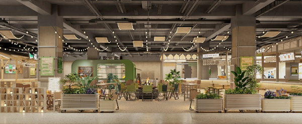本次环境升级聚焦舒适、社交、亲子、便捷四大维度,重构消费体验。公共空间融合绿植与休憩区,营造松弛氛围;餐饮街区优化灯光软装,打造度假式就餐环境;二层打造超360m²木育儿童互动乐园,以原木生态设计赋能亲子游乐;卫生间、母婴室等设施全面升级,贴合家庭需求。亚惠美食广场改造为“城市野营地”就餐场景,用餐更具仪式感。