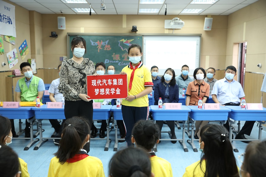 除了硬件设备的捐赠,现代汽车还特别颁发了“梦想奖学金“,以梦之名,守护那些家境贫寒、品学兼优的学生。希望能够通过长期的资助,帮助寒门学子顺利完成学业,让他们领略到更宽、更广的世界。奖励标准为初中阶段每人每学年2000元,高中阶段每人每学年2500元,大学阶段每人每学年5000元。本次“梦想奖学金”的奖励对象是桃园小学六年级的张硕伊,她一直铭记着爸爸妈妈的话“做人要满怀希望,要一切向前看”。相信现代汽车集团的“梦想奖学金”可以让她拥有一切向前看的底气和引以为豪的未来。